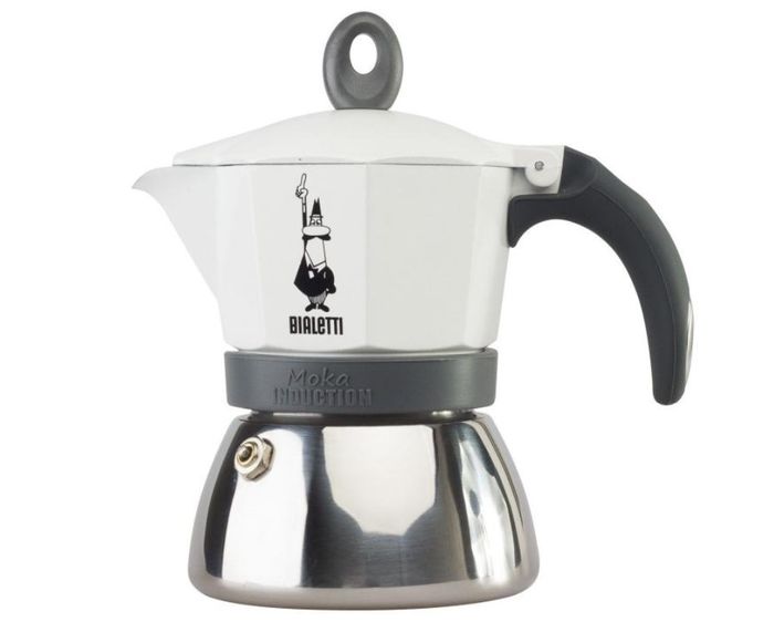 Kompaktní moka konvička od průkopníka v tomto segmentu – italské firmy Bialetti. Vybrat si můžete ze 4 barevných provedení. Objem nádrže na vodu je 150 ml, což odpovídá 3 malým espresso šálkům, resp. 21 g kávy. Vrchní část je sice vyhotovena z potravinářského hliníku, ale spodní část můžete díky nerezavějící oceli a sendvičovému dnu ohřívat i na indukční desce do průměru 9 cm.