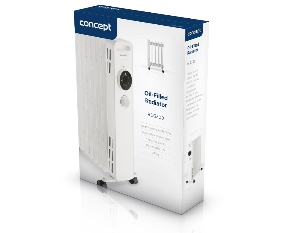 Jednoduchý olejový radiátor Concept RO3309 o výkonu 2 000 W potěší velmi dobrými akumulačními vlastnostmi. Výkon lze nastavit ve třech stupních a nastavení správné teploty je nenáročné pomocí termostatu. Díky kompaktním rozměrům, tichému chodu a elegantnímu designu se hodí do jakékoli místnosti. Potěší bezpečnostní funkce, zklame však o něco slabší výkon.