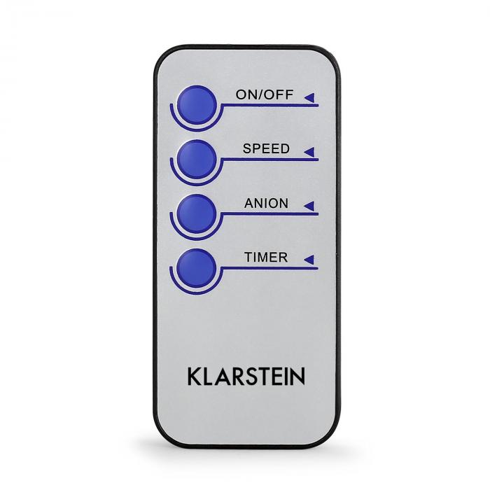 Čistička vzduchu Klarstein Grenoble se ovládá jednoduho pomocí 4 knoflíků na zařízení, o vybraných nastaveních informuje modře podsvícený displej. Jako plus vnímáme možnost ovládání na dálku. Na dálkovém ovladači se stejně nacházejí 4 knoflíky, s nimiž přístroj zapnete/vypnete, nastavíte rychlost (50 m³/h, 75 m³/h, 93 m³/h), časovač a ionizátor.
