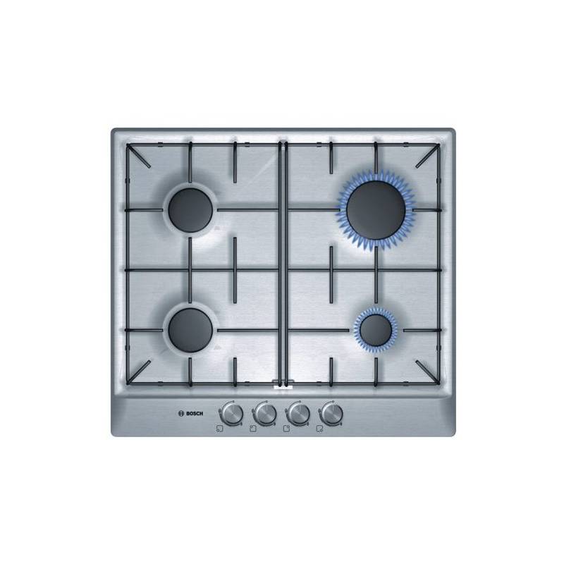 Plynová nerezová varná deska Bosch PCP615B80E. Je vybavena 4 plynovými hořáky. Elektrické zapalování je umístěno v ovládacím knoflíku. Trysky na propan-butan jsou součástí dodávky. Samotné ovládání desky vás potěší svou jednoduchostí, díky které hořák zapnete pohybem jedné ruky bez nutnosti knoflík otočit nebo podržet. Vaše pokrmy tak budou ještě o krůček dříve hotové. Po vaření pak oceníte jednoduchost i v liniích, které usnadňují čištění.